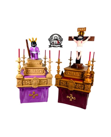 Las piezas en 3D relacionadas con la Semana Santa abarcan una amplia variedad de elementos, desde figuras religiosas como Cristos y vírgenes, hasta complementos decorativos como cruces, en la tienda puede ver una gran catalogo, casi todas las piezas son sin pintar para que cada cliente las pinte como mas le guste.